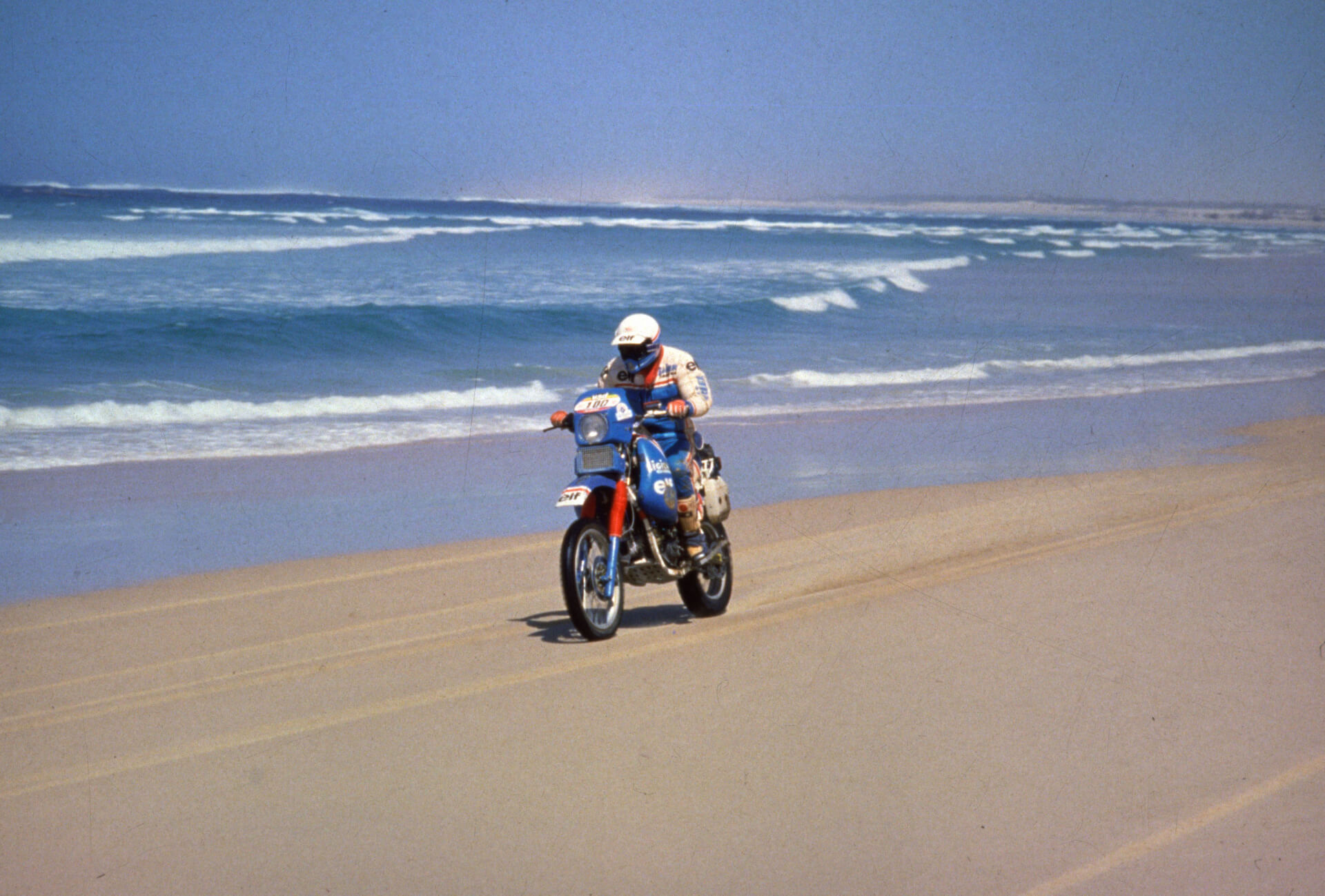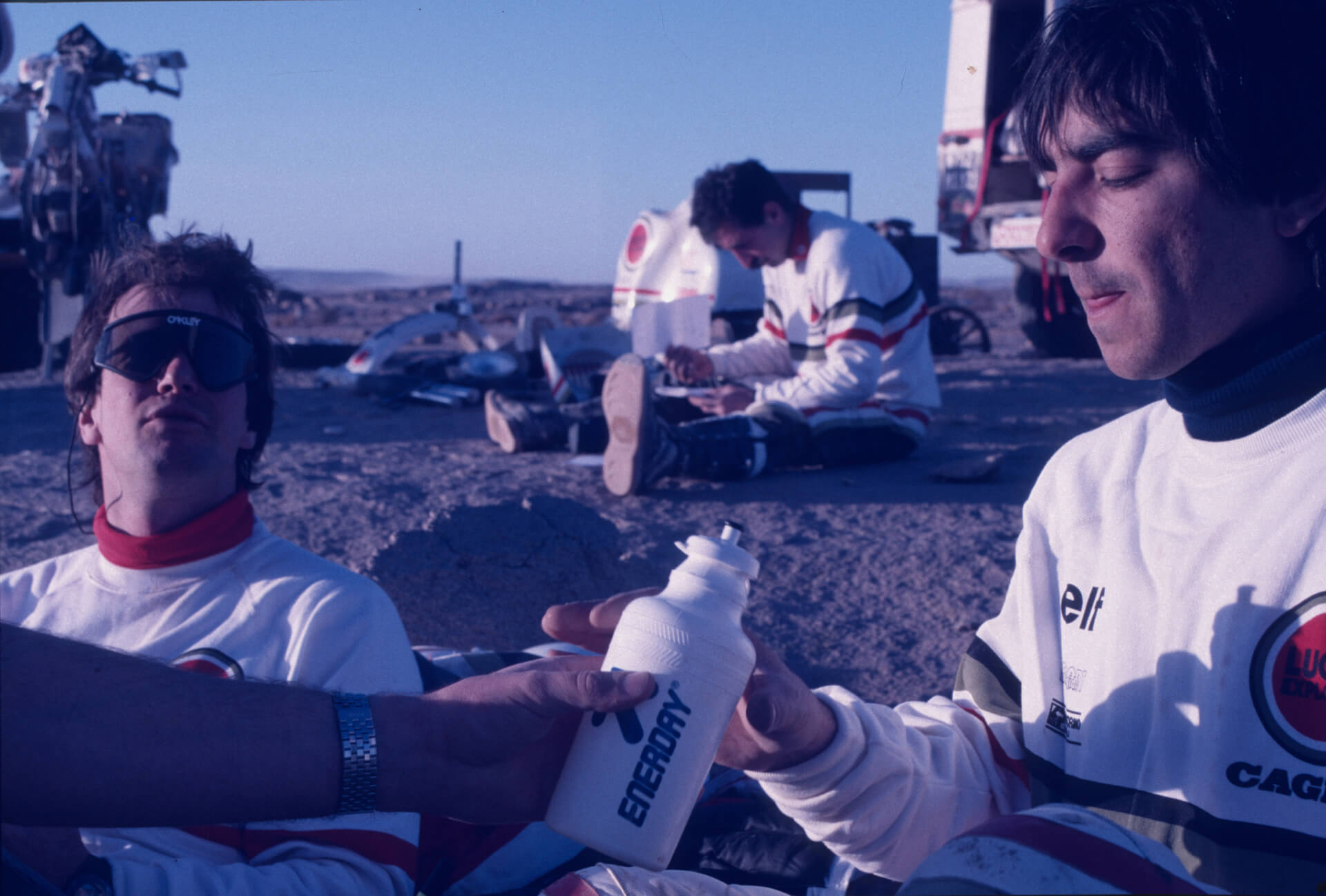 Born in Ethiopia in 1952, the legendary Hubert Auriol, known as “the African”, lived there for 12 years before moving to France, not far from Paris. As a child he had an incredible competitive spirit and a strong attraction for speed. Also, Africa had always remained in his heart: he knew Ethiopia and the whole of East Africa well, but he dreamed of discovering the Western part, still unknown to him. When Thierry Sabine began to organise the Dakar, he saw a unique opportunity of fulfilling his lifetime dream. On December 26th, 1978, the first edition of the Dakar departed from Paris and Auriol was among the participants, at the cost of great sacrifices and riding a Yamaha XT. Two years on, riding and official BMW, Auriol managed to take home the first in a long series of victories. A few years later, after meeting Gian Paolo Marinoni and Roberto Azzalin, Auriol decided to join the new Cagiva team, which he helped create. In 1984 the team debuted at the Rally d’Algérie with 3 riders: Auriol, Marinoni and Picard. Hubert’s bike didn’t make it to the finish line, but the French pilot knew he was on to something. oon Hubert was able to test ride a perfected Elefant 750. Auriol’s first Dakar with the Elefant was marked, in the early stages, by problems affecting the pump that started before the arrival in Tamanrasset. The morale was very low for the same problem had hit the other two bikes too, and the team had accumulated a considerable delay. But after the problem was solved, Auriol and his Cagiva made a spectacular comeback. He seemed all set to win that edition, but shortly before arriving in Dakar, his engine broke, forcing him to abandon the race. The 1986 edition was marked by tragedy: it had started off badly when Hubert broke his collarbone in an accident near Niamey, and ended in tragedy with Marinoni losing his life as a consequence of a crash that occurred in the very final stages of the race. The 1987 edition saw the epic duel between Auriol and fellow countryman Cyril Neveu. Auriol had nearly caught up with Neveu, who was in the lead, when he hit a stump hidden in high-grass and broke both ankles. He somehow managed to get back on his Elefant 850 and finish the leg in unimaginable pain. He was then flown to hospital, in Dakar, by helicopter. Though he never won the Dakar with Cagiva, Hubert Auriol remains one of its most charismatic riders of the Lucky Explorer team, and marked the history of the rally and of the brand forever.